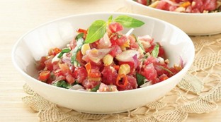 - Lumuri potongan ikan tuna dengan perasan jeruk nipis dan garam, aduk rata.